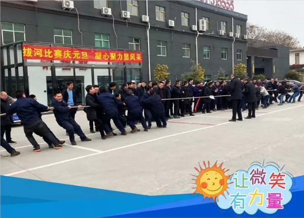 在喜迎2020年到来之际,公司也迎来了旺盛的市场需求,订单任务繁忙,员工加班加点迎站高产。为提振士气、展示各个团队的精神面貌,同时丰富员工的业余文化生活,在2020年元旦之日,公司举办了一场“拔河比赛庆元旦、凝心聚力显风采”活动,在各部门领导的大力支持下共有6支代表队,近100余人参加活动。