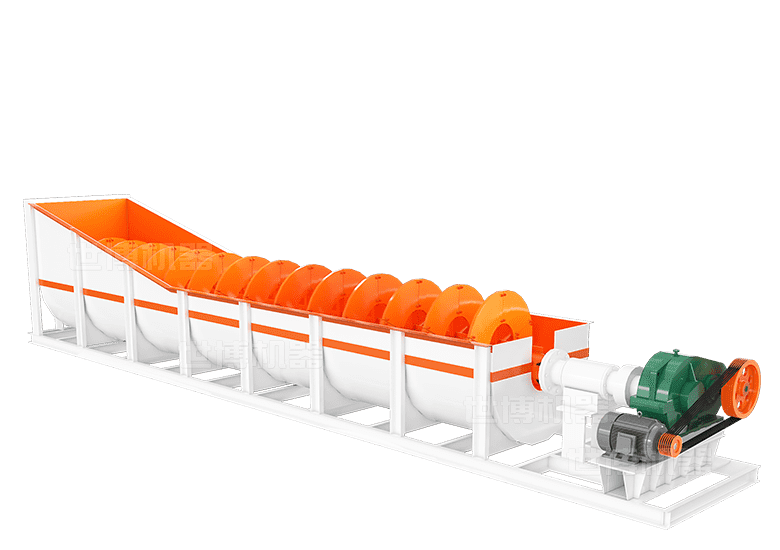 螺旋分级机主要有高堰式单螺旋和双螺旋、低堰式单螺旋和双螺旋、沉没式单螺旋和双螺旋四种分级机,是借助固体颗粒的大小不同、比重不同、因而在液体中沉淀的速度不同的原理,进行机械分级的一种设备。螺旋分级机广泛适用于选矿厂中与球磨机配成闭路循环程分程分流矿沙,或用在重力选矿厂中来分级矿砂和细泥,及金属选矿流程中对矿浆进行粒度分级,及洗矿作业中的脱泥、脱水等作业,是选矿的主要设备之一。