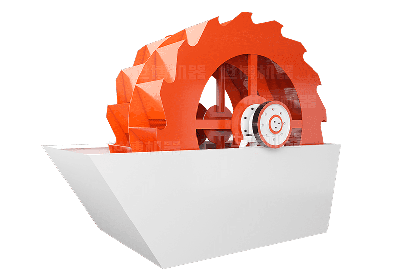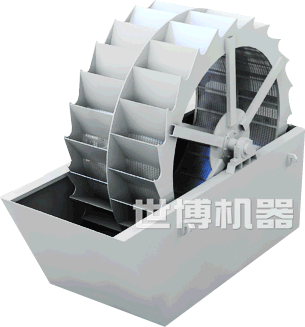 洗砂机工作时,电机通过三角带、减速机齿轮减速后带动叶轮缓慢转动,砂石由给料槽进入洗槽中,在叶轮的带动下翻滚,并互相研磨,除去覆盖在砂石表面的杂质,同时破环包覆砂粒的水汽层,以利于脱水;同时加水,形成强大水流,及时将杂质及比重小的异物带走,并从溢出口洗槽排出,完成清洗作用。干净的砂石由叶片带走,砂石从旋转的叶轮倒入出料槽,完成砂石的清洗作用。